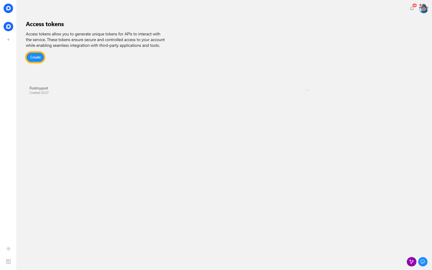 - Open the "Access Tokens" section.