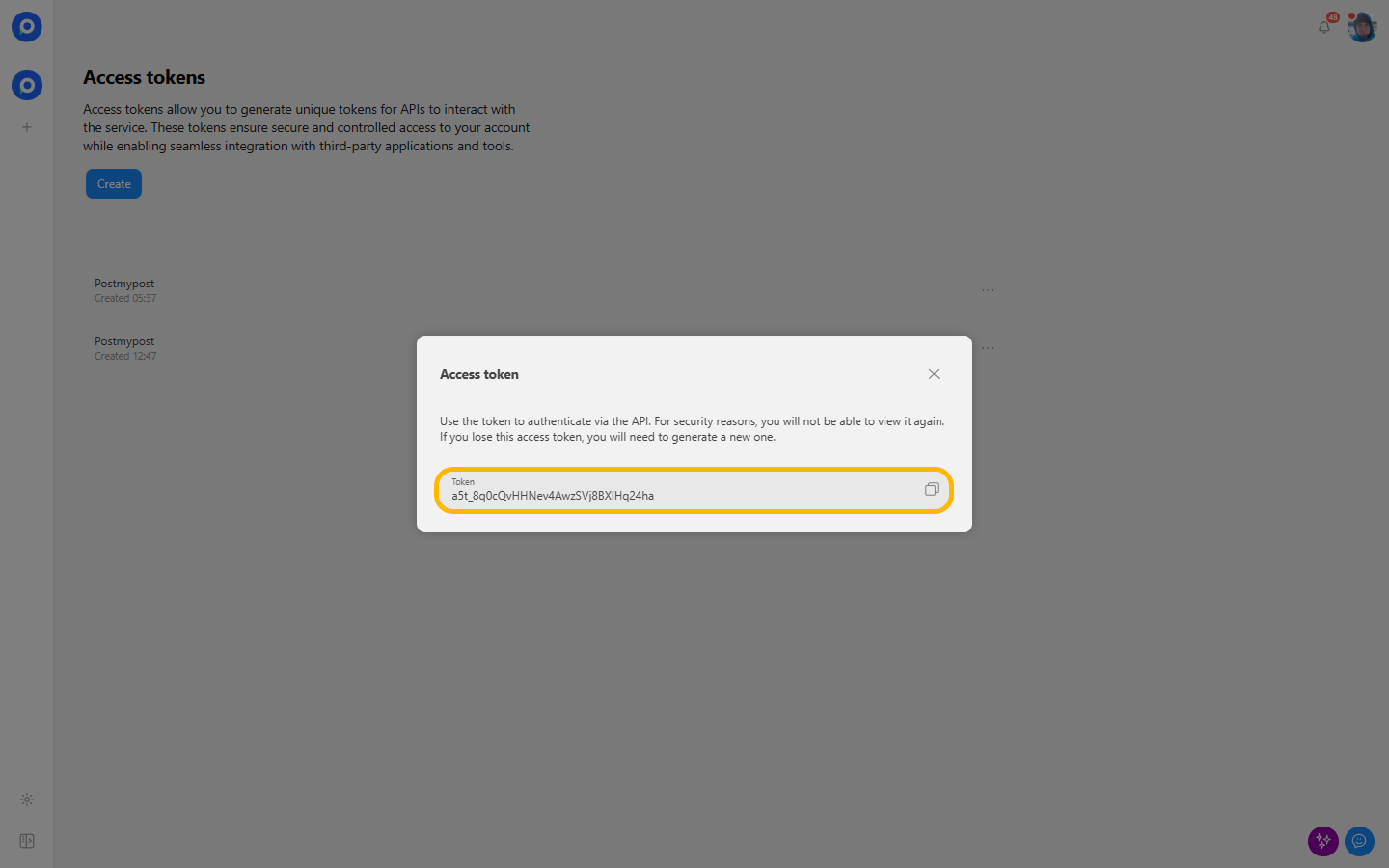 - Save the generated token.