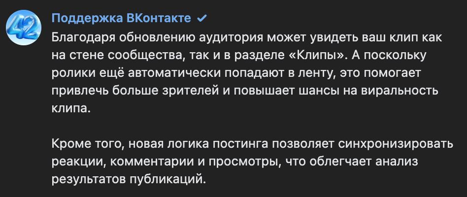 We prepare and send VK the file and publication parameters so that they meet the requirements of the "Clips" algorithm. But the final decision is always up to VK — we cannot override it.