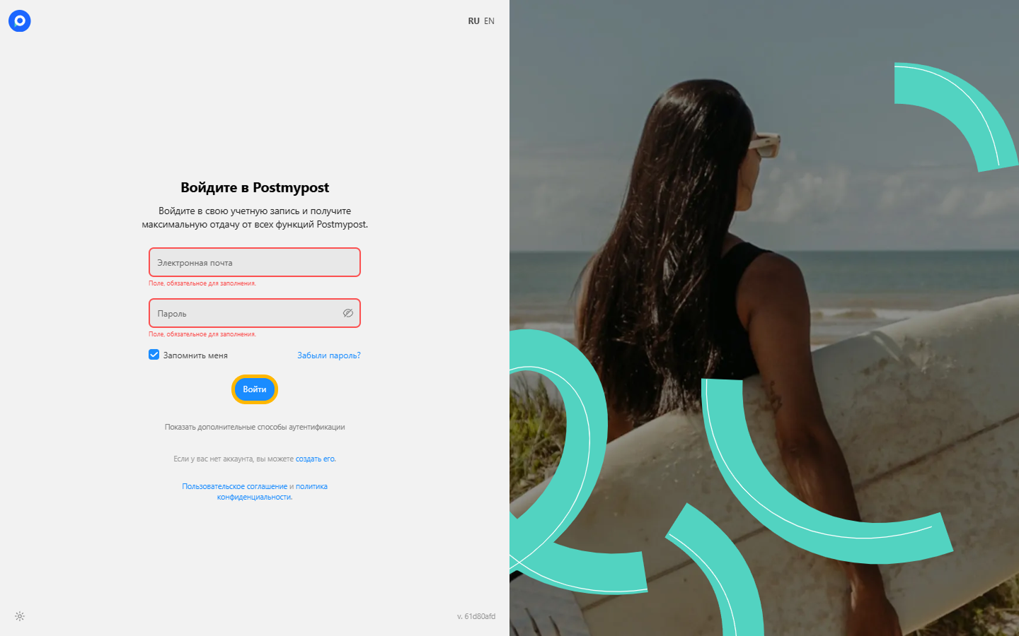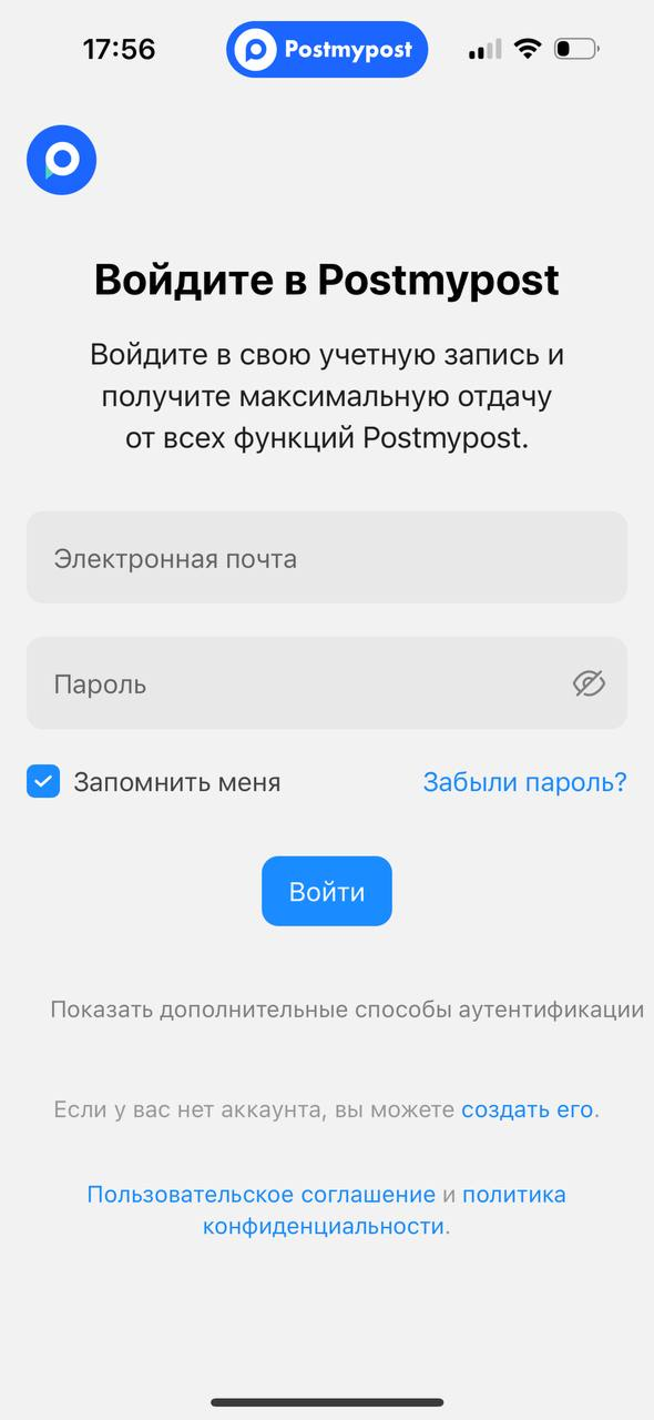 - Кіру бетіне өтіңіз: https://app.postmypost.io/login