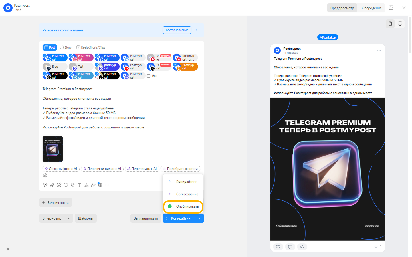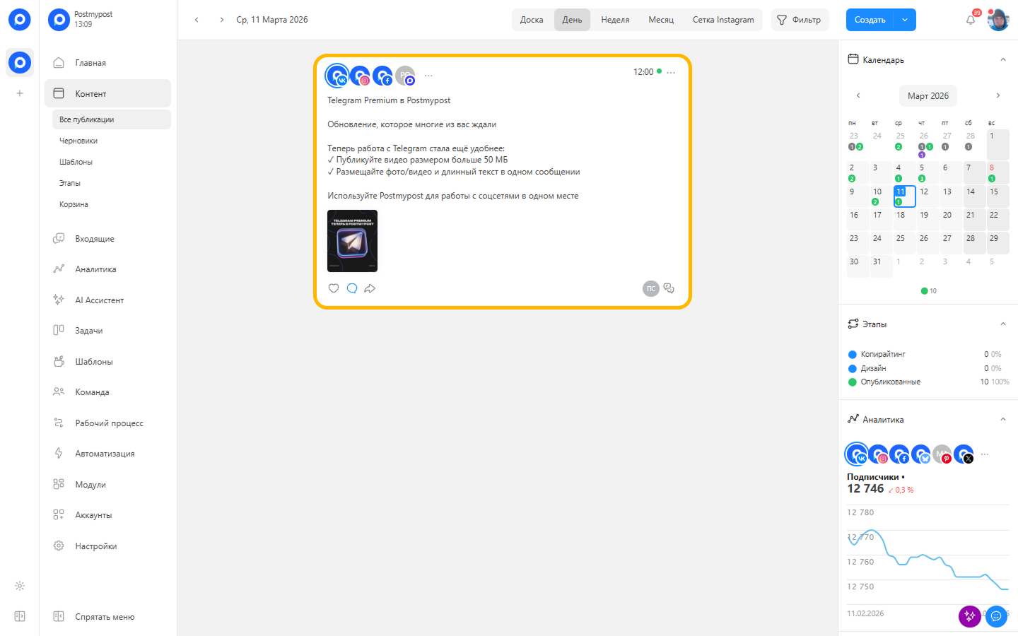 - Қосымша аккаунттар мен арналарды қосып, кросс‑жариялау жасаңыз.