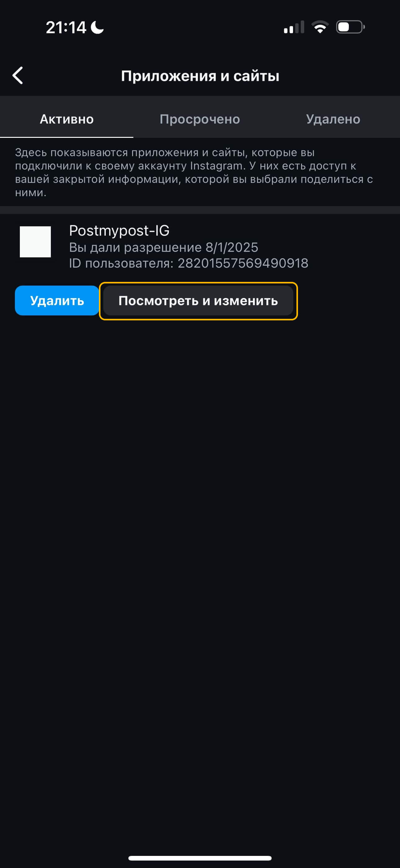 Instagram-нан postmypost бағдарламасын қалай жоюға болады