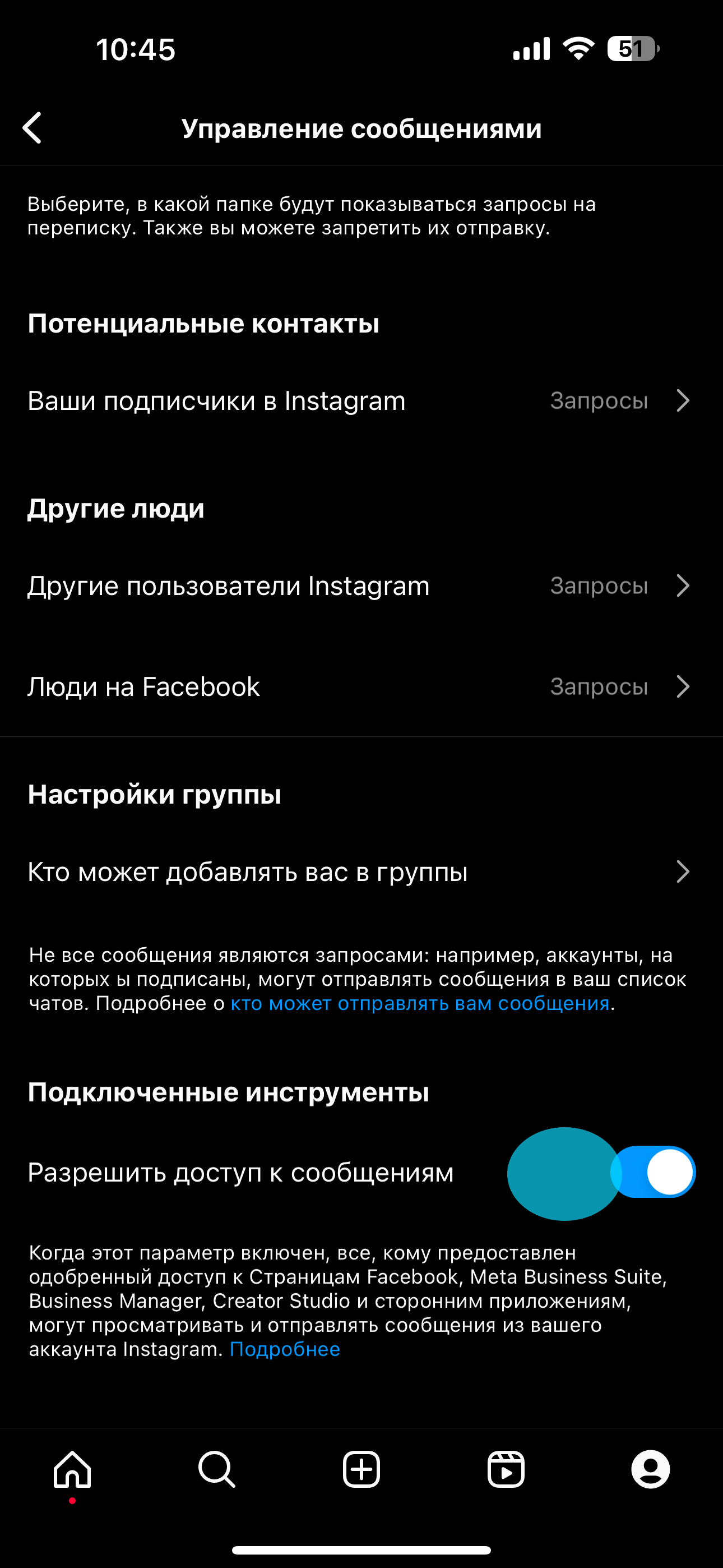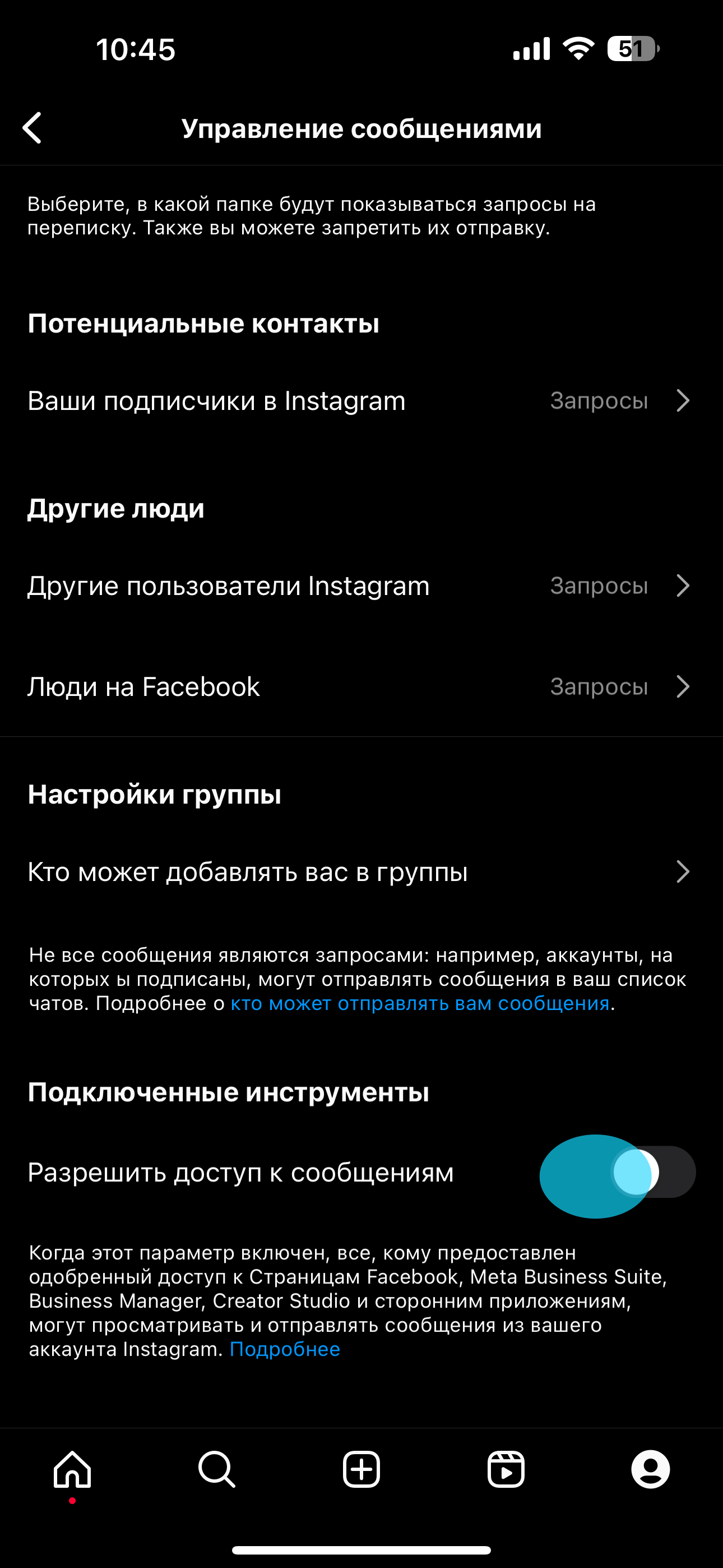 Instagram-дағы хабарламаларға қол жеткізуді орнату