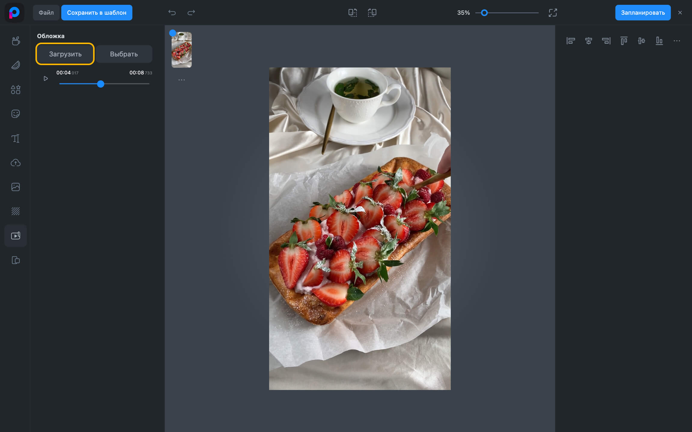 - Жариялау редакторында жүктелген бейнеге меңзерді апарыңыз.