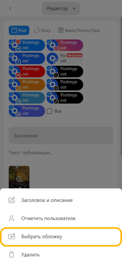 | Әлеуметтік желілер | Мұқабасы бар бейнені жариялау |